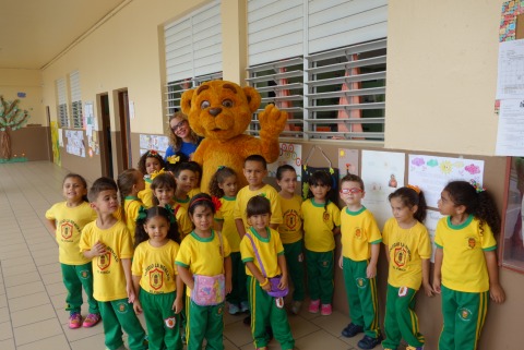Hoy fuimos al Colegio La Merced de Cayey que celebraba su gran fiesta escolar por ser el día de la Merced. ¡Qué mucha dulce energía encontramos en el Colegio La Merced! Leímos el cuento en un salón de Kinder. ¡Los niños se portaron tan bien! Contestaron todas las preguntas de comprensión del cuento y luego contaron para ver si llegaba Bimbo... Bimbo ya estaba en la escuela pero había parado por la oficina de la Principal para saludar. Allí le dijeron a Bimbo que en honor a su visita y por ser el día patronal de la escuela ¡todos los estudiantes recibieron como obsequio de la escuela una meriendita Bimbo!